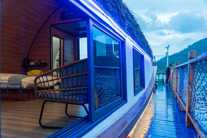 Tanka Sea Hostel is located in Língshui Li Autonomous County, Xincun Port, to the southeast of Xincun Town. The rooms are in the shape of fishing boats built on a floating pontoon and are large enough to easily accommodate a family of three or possibly four.